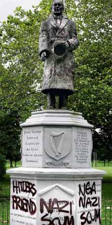 Passing the Sean Russell statue in the car, noticed this. A serious glisten of it from the road grabbed my attention. Is it the remains of the last attack, from the ‘day of the swastikas’, or something new? In retrospect,the serious glisten off the statue could be the result of an attempted clean up, for example.