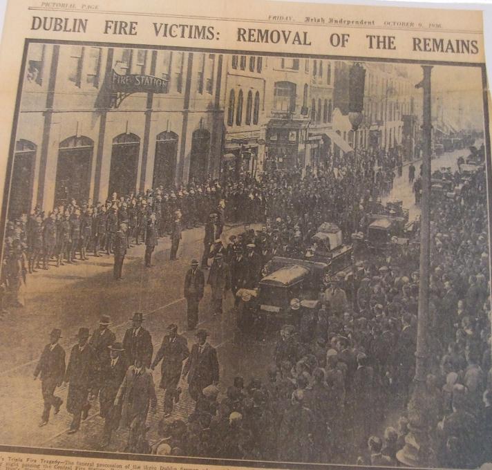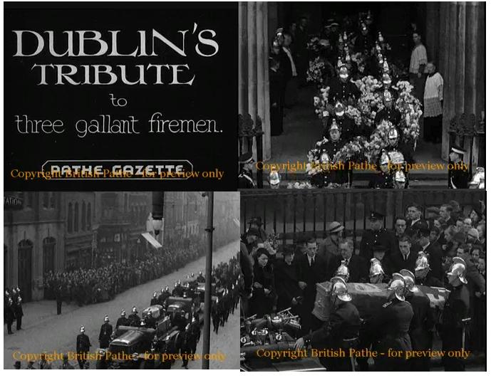 If you google up britishpathe.com/video/dublinfiremensfuneral you will be able to view the funerals coming out of Westland Rd Church, and then driving up past Pearse St Fire Station.