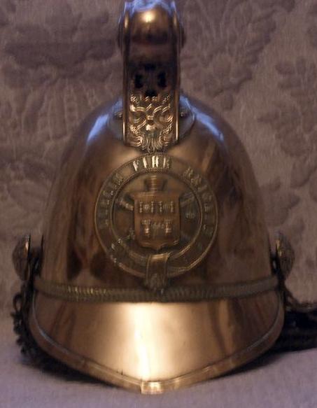 A Dublin Fire Brigade brass helmet, the typical model worn by men in the Brigade at the time of the Pearse Street fire. (L.Fallon collection)