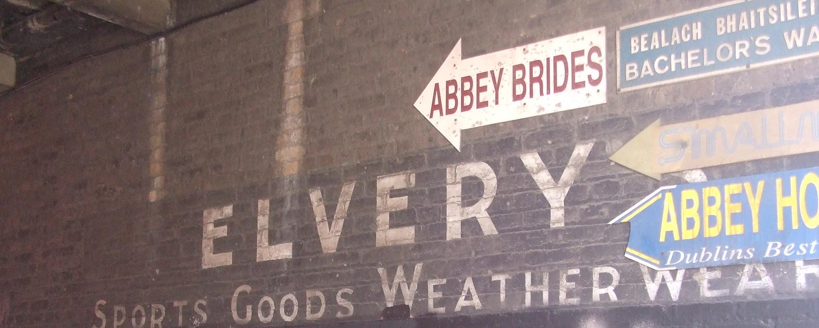 I’ve always liked this old school advertisement for Elvery Sports, in the laneway opposite The Oval pub. Elvery’s is Ireland’s oldest sports shop, founded in 1847. It’s long been a staple of Dublin and indeed Irish life, with strong links to domestic sports. The Elvery’s at the bottom of O’ Connell Street was one I always had a soft spot for, owing to the reappearing Saint Patrick’s Athletic F.C jersey in the window. Behind enemy lines, looking pretty on the northside.