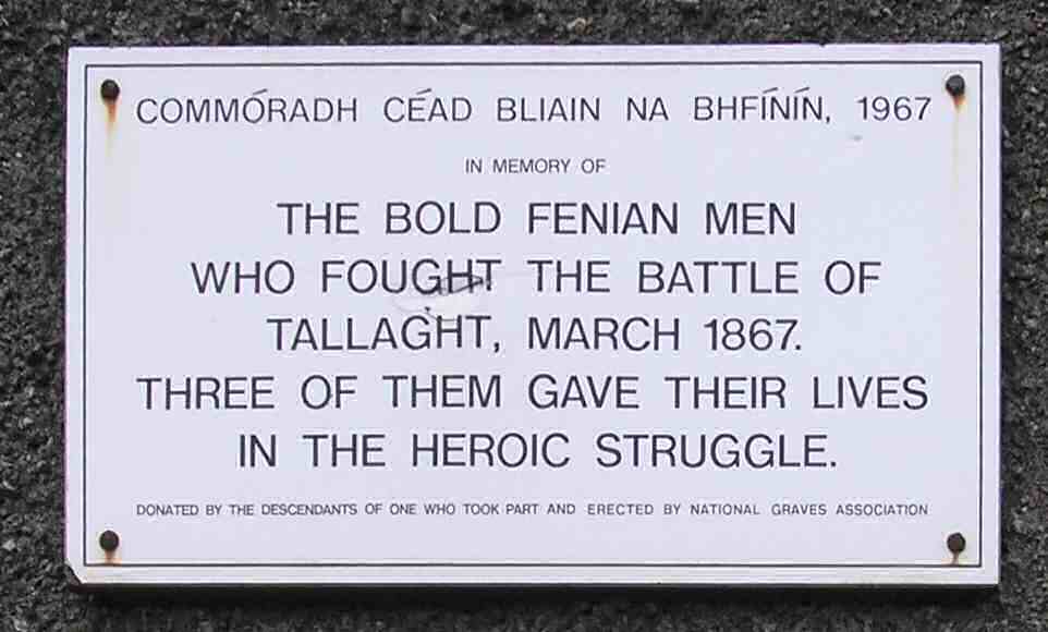 Finally, have a look at this plaque dedicated to the Fenians who fought in the 1867 rising in Tallaght: