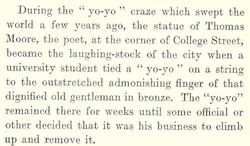 Thomas Moore and his yo-yo is a well-known Dublin story.