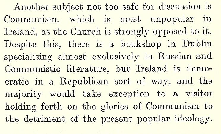 We’ll begin with this, a warning on discussing Communism in Dublin. Notice it gives reference to New Books, a bookshop selling “Communistic literature”.
