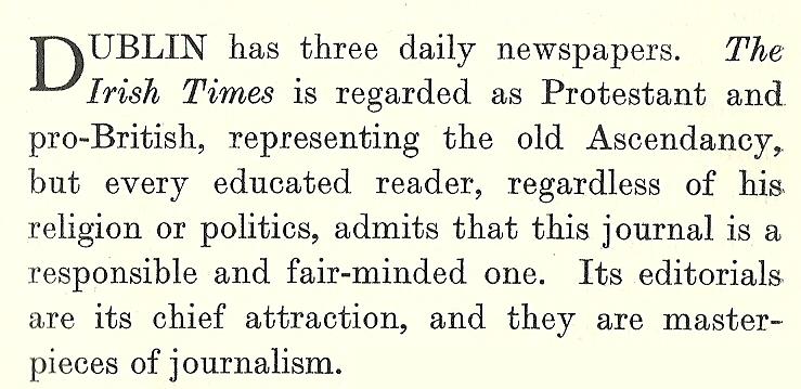 The Irish Times is discussed here, described as the paper of the old Ascendancy.