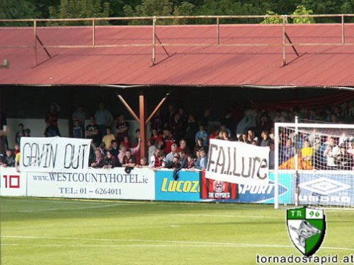 Bohs NBB had a message when they made the trek to Inchicore, directed at the Football Association of Ireland. An old classic reappeared, joined by a new addition calling for ‘Gavin Out’.