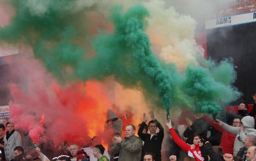 Inchicore saw a few large travelling contingents. Towards the end of the season, with a win looking like it would seal the deal for Rovers, a large travelling support saw a 3-1 victory over Pats from the vantage point of the Shed (Worst view in the league?)