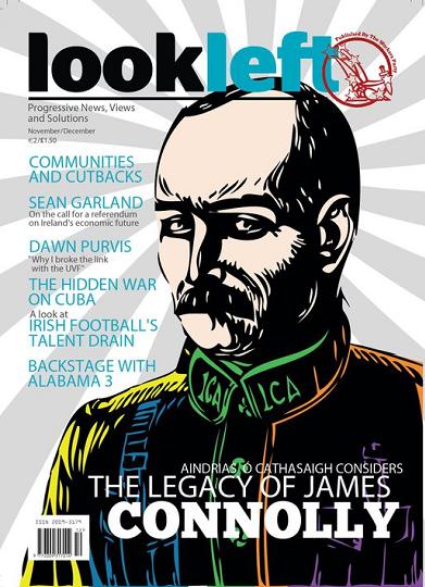 Lookleft Magazine issue 4 is out now. It is available from Eason’s, and also around the city from a number of independent bookshops and news vendors. We’ve got some bits and pieces in it. Jaycarax from this parish provides some nice bits, and the lead article from Aindrias Ó Cathasaigh in the form of ‘The Legacy Of Connolly’ makes for excellent reading. The cover, if I may say so, is a cracker.
