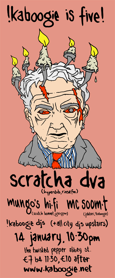 Kaboogie celebrates their 5th birthday with SCRATCHA DVA (hyperdub / rinse fm – uk), MUNGO’S HI-FI (scotch bonnet – scotland), MC SOOM T (jahtari / !kaboogie – scotland, !Kaboogie Djs, All City Records Djs (upstairs). Facebook event here.