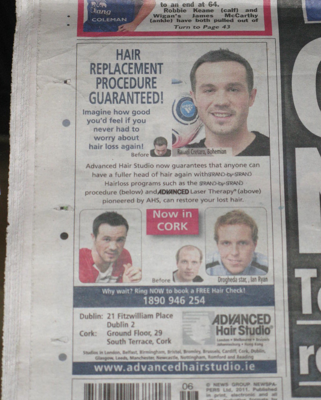 Right, don’t get me wrong, I’m not slagging either of these blokes- my family are gifted with foreheads you could play handball off; but I just spotted this on the back of a paper that shall remain nameless (a red top hated by the red half of Liverpool, I didn’t buy it, my housemate did.)