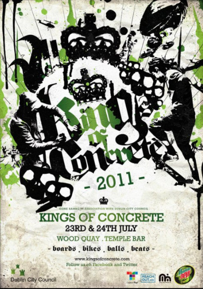 This Saturday and Sunday sees the return of Kings Of Concrete to Wood Quay. Music,street art, skating and more besides feature. In previous years it has always been enjoyable, so here’s hoping the weather holds up and the god of the weather doesn’t ‘do a Bloomsday’ on the youth.