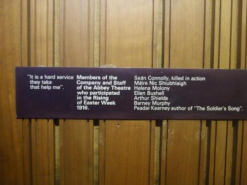 I came across this last night at The Abbey, having gone to see Translations. Excellent if you’re wondering. You’re running out of the on that one. The memorial seems to be a replacement to the plaque which was to be found at the Abbey for many years. I’d be interested in hearing from anyone who knows just how long this memorial has been in place.