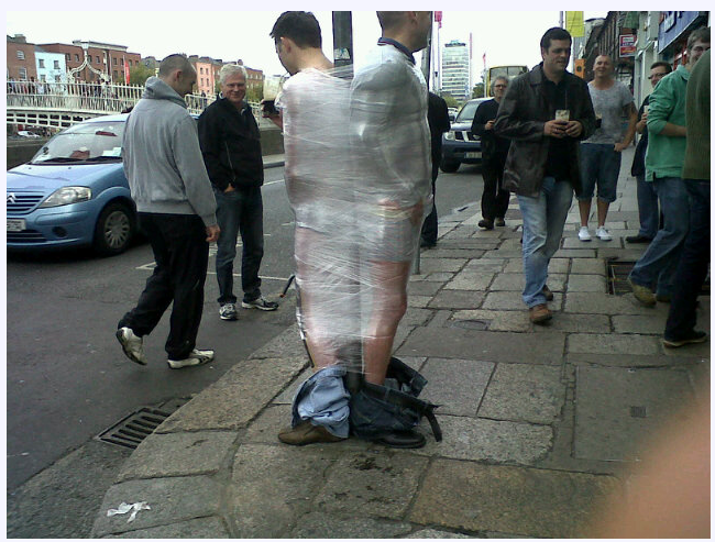 … and being wrapped around a lamppost on the quays with cling film is definitely one.