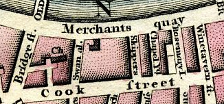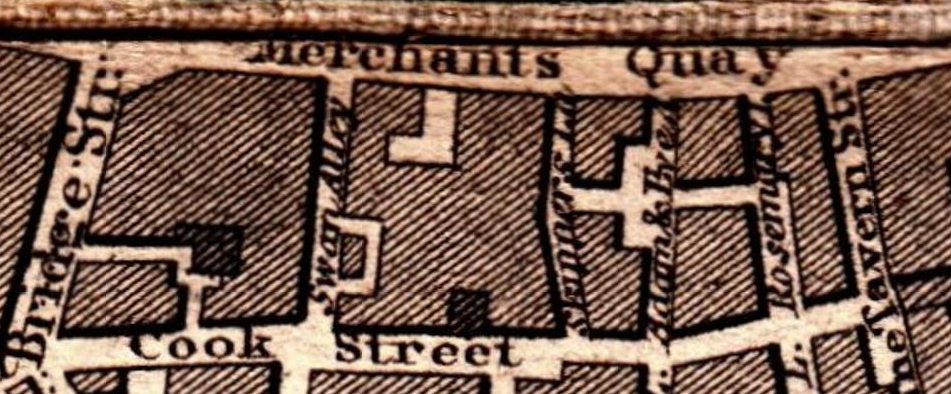 Between Lower Bridge Street and Winetavern Street, four alleyways used to extend from Merchants Quay to Cook Street, now only one, Skippers Alley, can be traced today in the modern landscape.