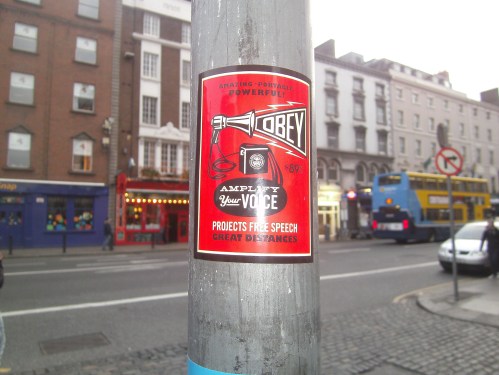 OBEY stickers spotted around Temple Bar today. Thanks to Luke F. for sending these snaps on.