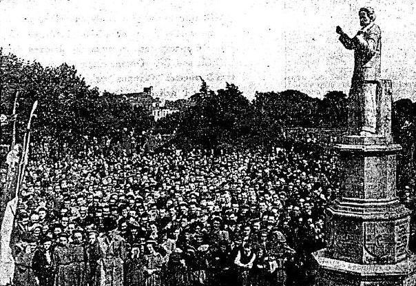 The procession marched to Fairview via O’Connell Street, Amiens Street, North Strand, arriving at Fairview Park at about 1pm where the general public had already assembled in large numbers, many no doubt attending from the point of view of curiosity.