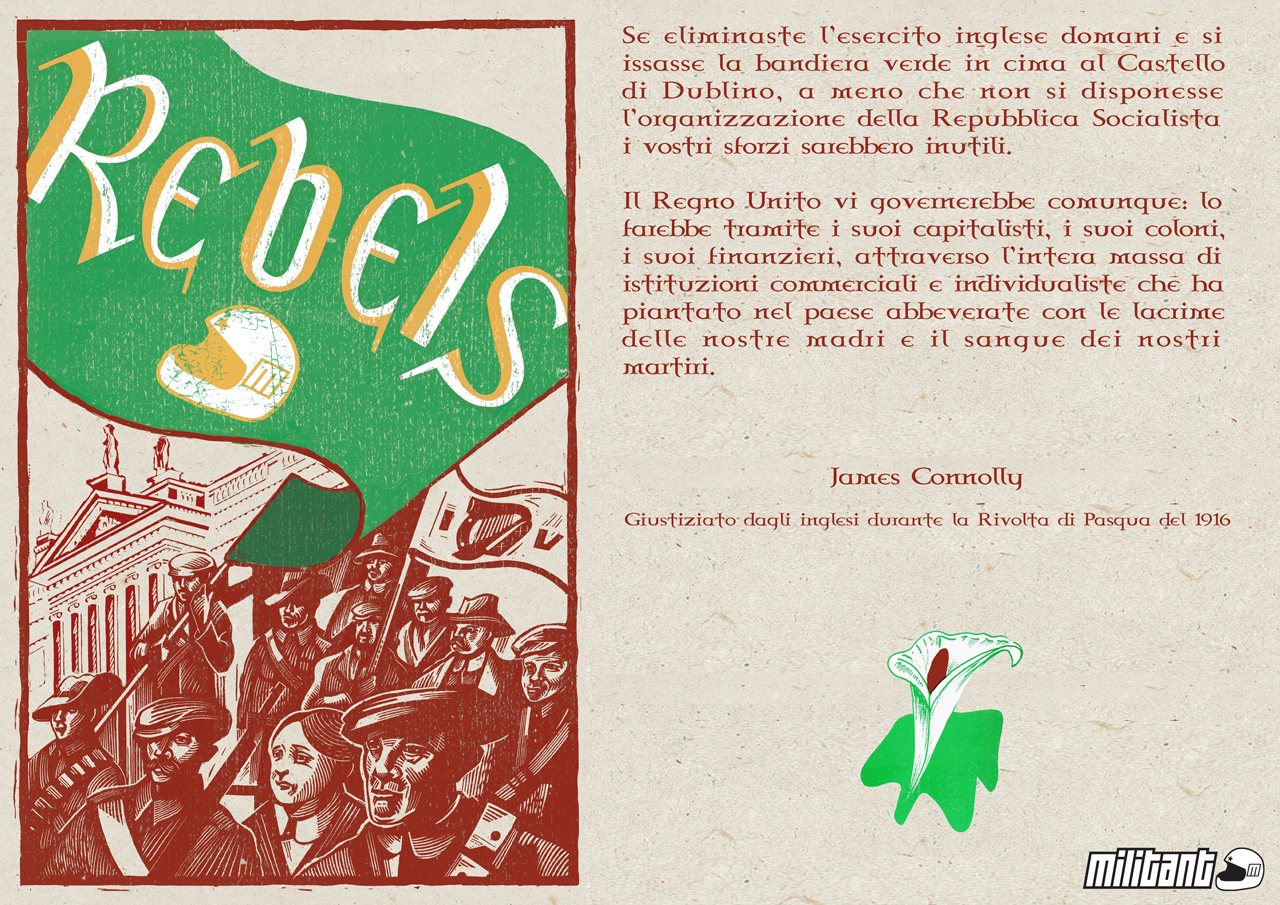 If you remove the English army tomorrow and hoist the green flag over Dublin Castle, unless you set about the organization of the Socialist Republic your efforts would be in vain. England would still rule you. She would rule you through her capitalists, through her landlords, through her financiers, through the whole array of commercial and individualist institutions she has planted in this country and watered with the tears of our mothers and the blood of our martyrs. – (Shan Van Vocht January, 1897. Reprinted in P. Beresford Ellis (ed.), “James Connolly – Selected Writings”, p. 124.)