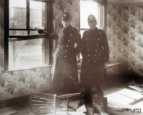 Gardaí inside Connolly House on Great Strand Street in 1933 following the siege of that building by an anti-Communist mob.