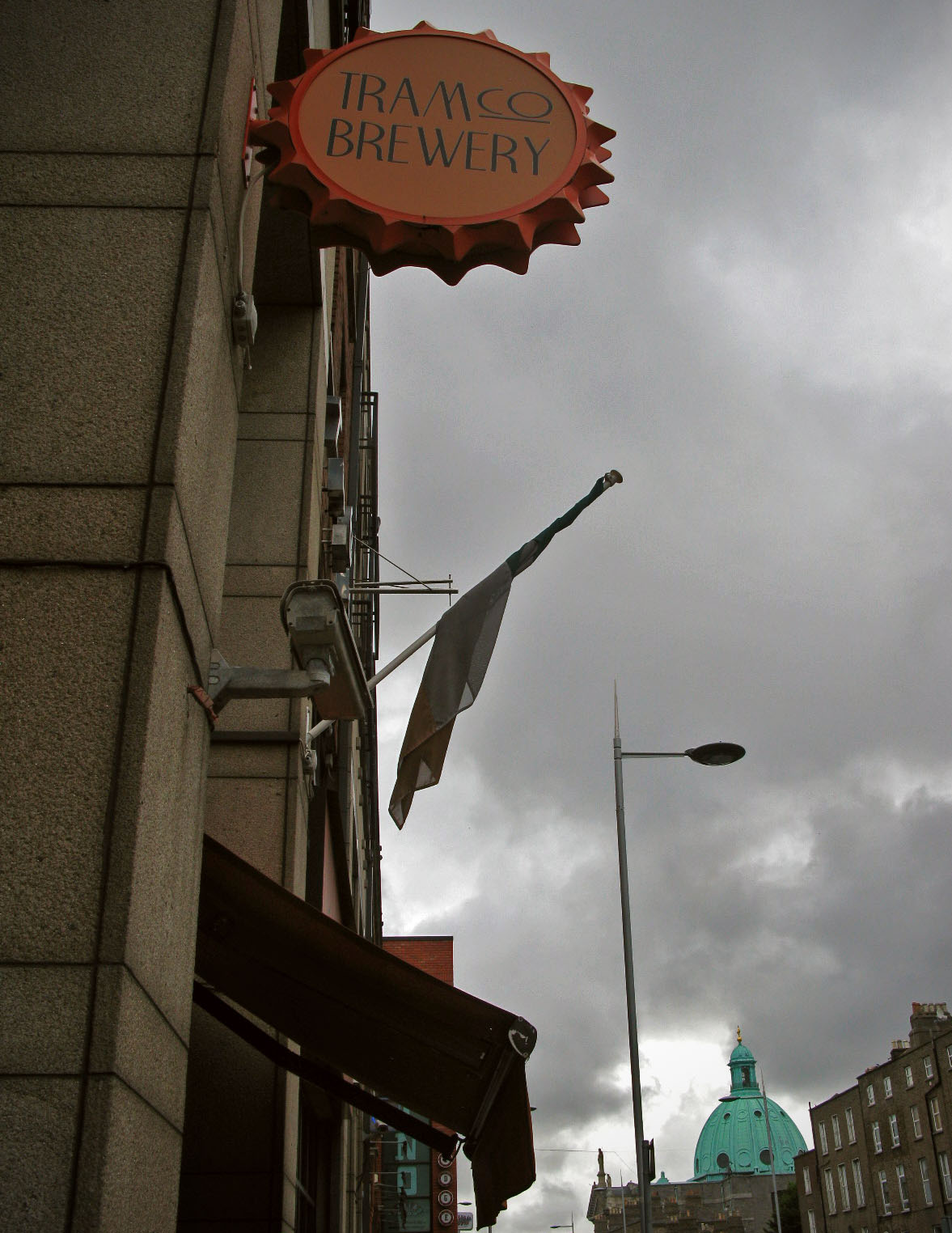 The tri- colour outside TramCo., Rathmines. A fetching shade of baby poo green, grey and brown. “For what died the sons of Roisin” and all that.