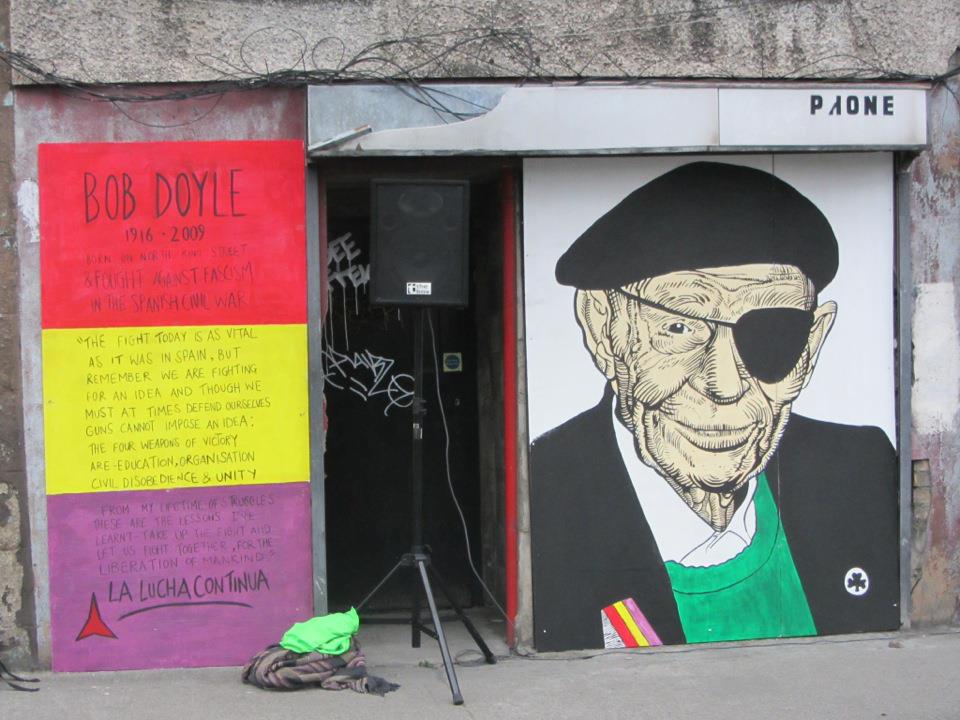 The mural at The Cobblestone pub in Smithfield, unveiled by Harry Owens and Thomas the artist, is dedicated to local Irish Republican and International Brigader Bob Doyle (1916 – 2006)