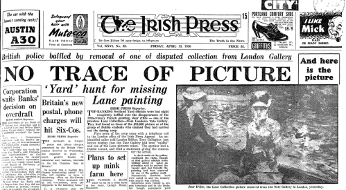On April 12th 1956, two Irish students stole one of the 39 contested Hugh Lane paintings from the prestigious Tate Gallery in London.