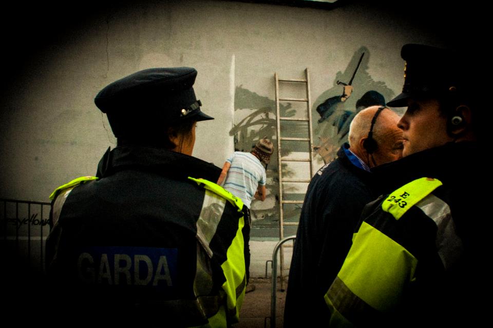 Back in August, Dublin street artist and CHTM favourite ADW ended up in hot water with the Gardaí for a piece of street art he painted as part of the Kings of Concrete Festival. In a city where Justice has always looked a little funny, (“The Statue of Justice, mark well her station, her face to the castle and her arse to the nation!”) ADW placed her over the knee of a riot-squad officer, which led to this scene: