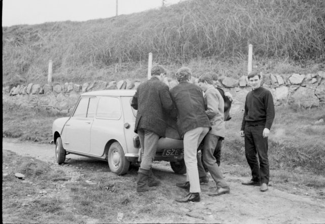 The guys eventually got it as far as their car, an Austin Mini parked on the outcrop which can be accessed from the road. I couldn’t see the registration number and went round the front of the car for a better view. Quick as a flash, one of the people was sitting on the ground obscuring the registration plate.