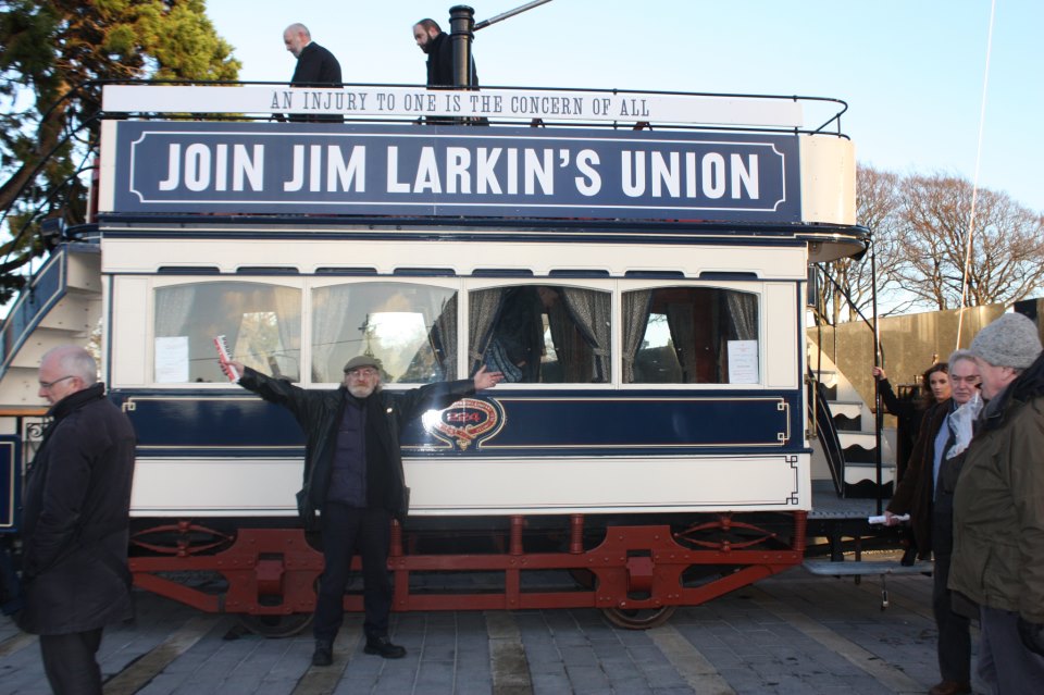 Jer O’Leary, the Dublin actor who performs the role of Jim Larkin with great passion, done the very same. Last year I saw Ger deliver one of Larkin’s speeches to a class of schoolchildren in Ringsend, one of the areas in Dublin which was caught up in the labour dispute. Anyone who hasn’t can see Jer in action here.
