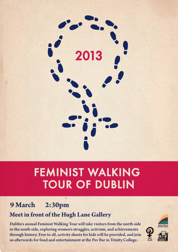 As ever, we wish every success to the annual Feminist Walking Tour. I had high hopes of attending and supporting the event, but am away in Italy for the weekend (it’s a hard knock life). The event is free, and is followed by food and refreshments in the Pav, at Trinity College.
