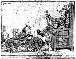 Larkin understood the power of cartoons, which were a constant presence in his Irish Worker newspaper, but he was also ridiculed in the pages of the mainstream media. This great little cartoon comes from the conservative Daily Express in England, who believed politicians in Britain were bowing before the ‘Larking’.
