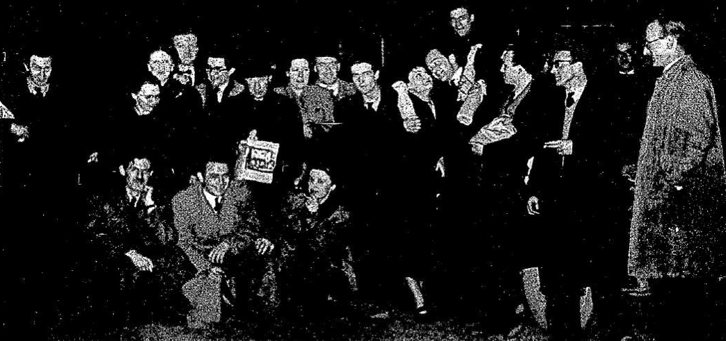 This amazing but unfortunately very grainy photograph shows a group of nineteen drinkers just after leaving McDaid’s on the way to the Catacombs:
