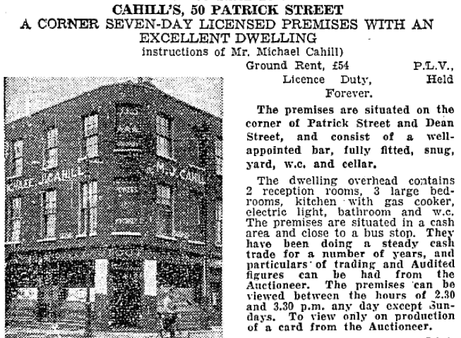 In the late 1950s, the Unemployed Protest Committee used 50 Patrick Street as the contact address for their organisation.