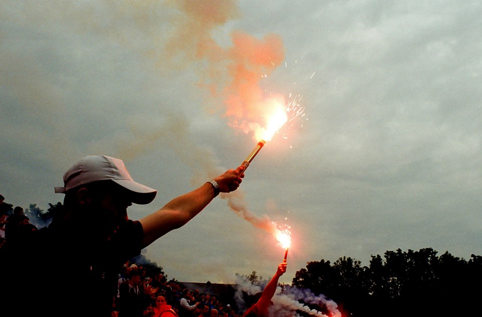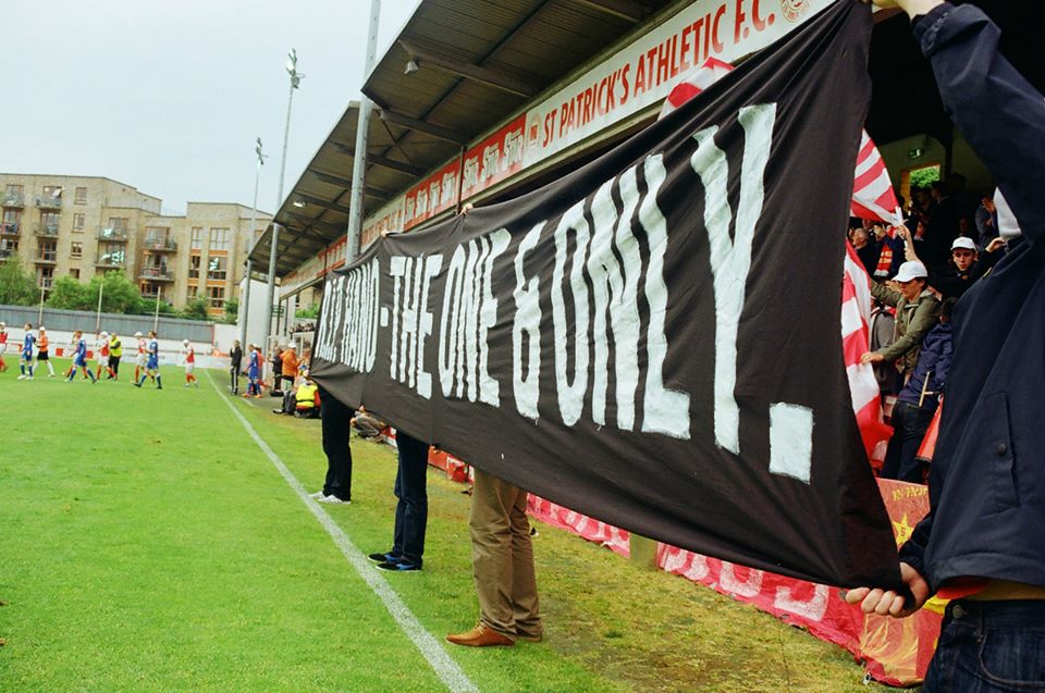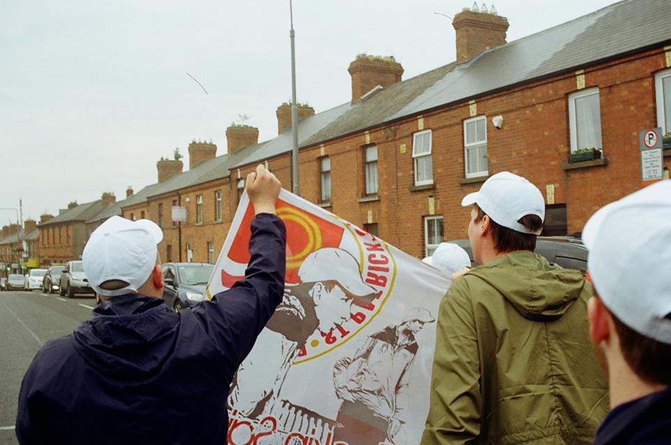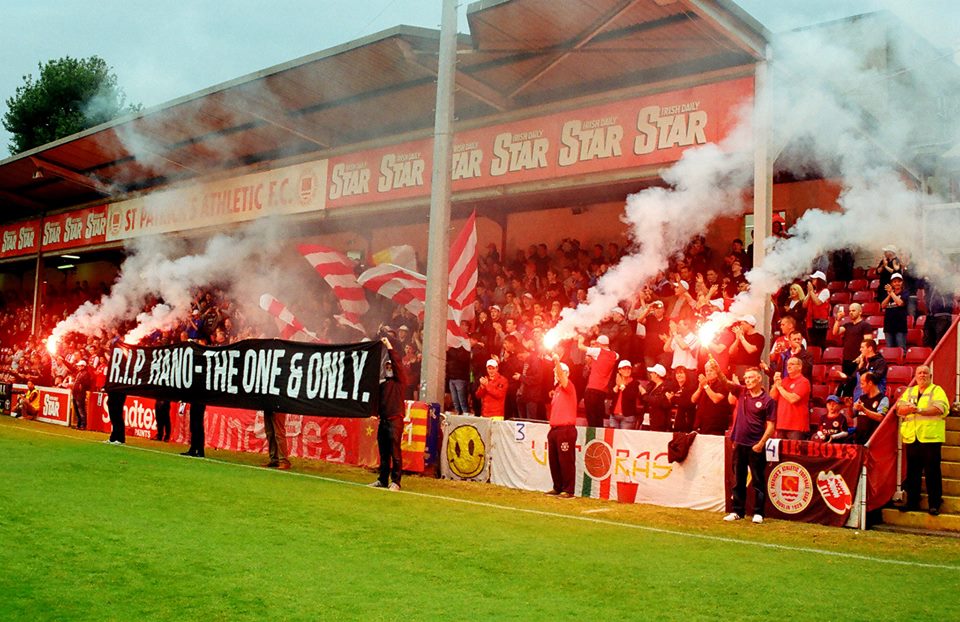 Niall ‘Hano’ Hannigan was a well-known figure not only at Saint Patrick’s Athletic but right across the League of Ireland community. A committed volunteer at the club he loved so much, he gave much of his time to the youth sides at the club and to issues which involved supporters, such as organising away buses. His sudden death last week was a heartbreaking moment for so many at Saint Pat’s, and his trademark white cap will be missed in Richmond Park. Luke Fallon captured these photographs on Friday as Saint Pat’s fans remembered one of their own. As ever with Luke’s images on this site, they were captured on film.