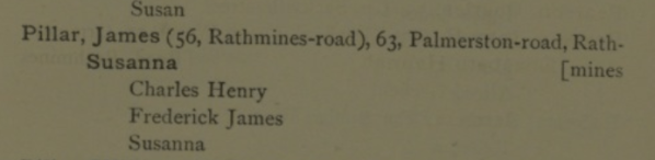 Pillar served half of his 20 year sentence according to author Glenn Chandler and was released in 1894. He didn’t last very long on the outside. Records show that James Pillar died in Mercers Hospital, Dublin on 24 November 1894 aged 72. He was a listed as a merchant of Ballin?, Wicklow.