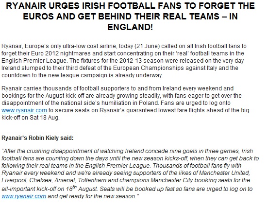 With the domestic game, Damien Richardson was one of the few who backed the planned move to Dublin, noting that “I feel their presence here would raise the profile of the sport in Ireland and the League would benefit”, while Brian Kerr took the opposite view, believing such a move would be devastating for the domestic game, already competing with English soccer for media coverage.