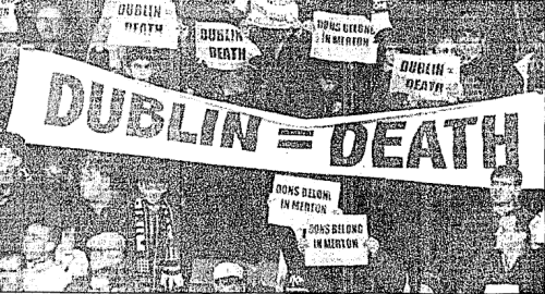 One of the most interesting disputes in the history of ‘The Beautiful Game’ in Dublin was undoubtedly that around proposals to bring Wimbledon to Dublin in the 1990s. Backed by a number of high-profile supporters, a consortium attempted to move the team here and rebrand them as the ‘Dublin Dons’. This caused considerable anger among fans of the domestic league, and the issue featured heavily in the mainstream media.