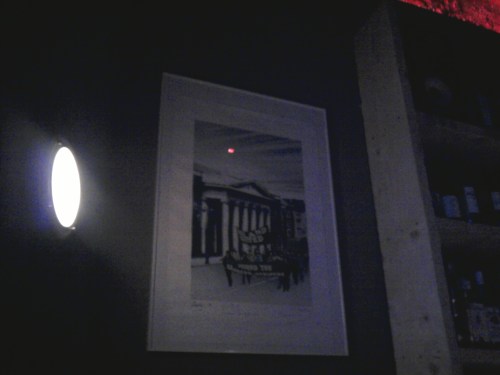 The outstanding thing I found about the Shebeen (apart from the fact that there’s a hairdressers on the way to the jacks) was the above Robert Ballagh piece on the wall, depicting a rally in Dublin in support of the Hungerstrikers. It’s rare enough to see one of these in Dublin so imagine my surprise when I saw it taking pride of place here…