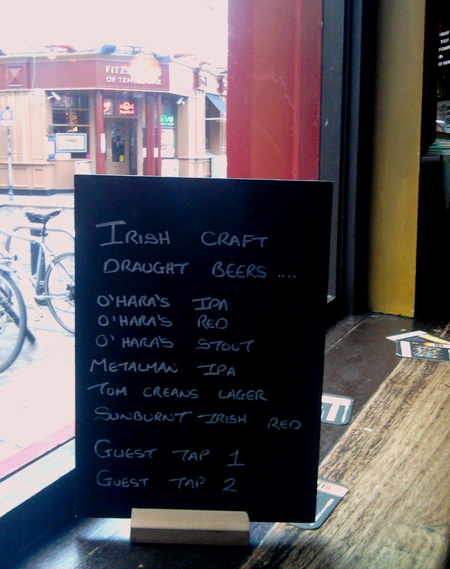 Meeting the other two and KBranno in town at five, a Leo Burdocks and a taxi in the lashing rain later, we headed over the canal and into The Oarsman. A very busy spot this and my first impression was that… Christ, this place is a relic; but in a good way! The pub doesn’t appear to have changed too much inside or out for donkey’s years. There has been a business on this spot since 1882, and a pub here since the sixties. The original grocers shop became the snug area inside the door (where we were lucky to nab seats, kudos to Paul R for that,) and the pub was extended out the back. A long narrow layout means ordering a pint from the beautiful old wooden bar is awkward enough. The stairs down to the jacks is halfway along it on the right, meaning if the seats at the bar are taken and you’re ordering, chances are you’re blocking someone’s way. Nonetheless, we weren’t left waiting and ended up staying for a couple of pints apiece, at €4.45 a pop. The most expensive pint of the crawl but still, relatively cheap compared to pints closer towards town. A lovely pub this and a place I’ll be back to, if just to try out the food they’ve recently started to serve.