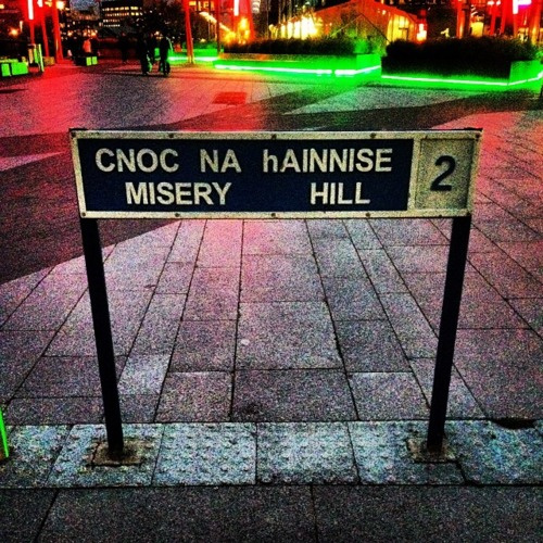 Paul Clerkin’s wonderful little book Dublin Street Names (Published in 2001 by Gill and Macmillan and right up the street of a lot of CHTM readers I imagine) gives good insight into this bizarre name, noting that “in the early 13th century, there was a leper hospital close to the junction of modern Townsend Street and Hawkins Street. Sufferers who were unable to gain entrance to the hospital would spend the night at Misery Hill, well away from the town and its citizens.”