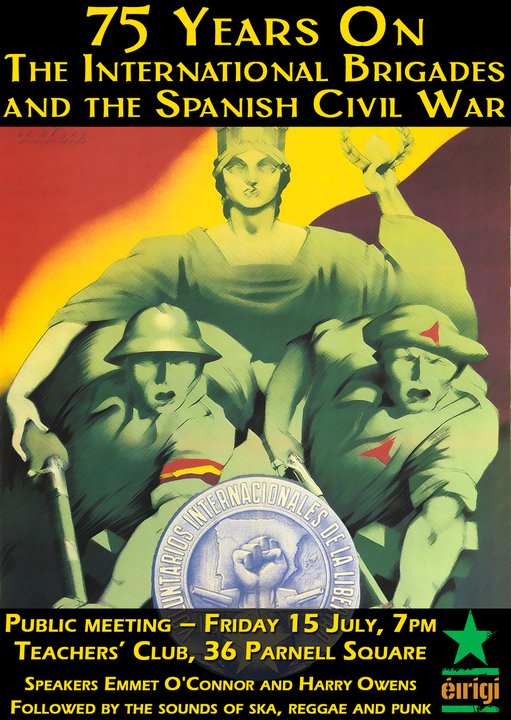 This year marks the 75th anniversary of the civil war in Spain. I’ve long been fascinated by the conflict, as most ‘lefties’ are I suppose, not least the international elements of the conflict. For many in Ireland, the war would be seen not a foreign war to observe from a distance, but a struggle between ideologies in which to partake.
