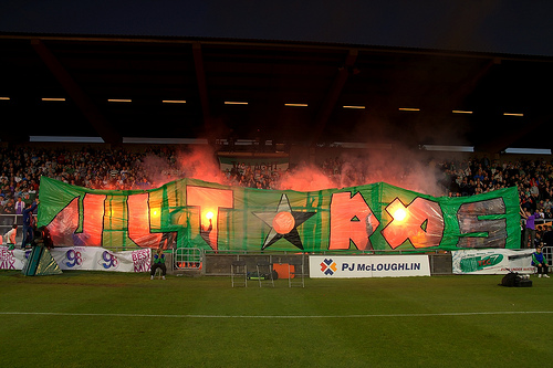 One of the things I’ll never forget from being taken down to see Pats in Inchicore as a youngster was the colour. We’re not just talking flags here, but smoke and fire. Of course, health and safety saw to it that flares were to be ultimately more or less eliminated from the domestic league, becoming a very uncommon and fine-heavy occurrence.