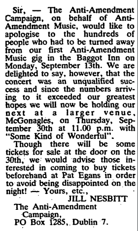 While Aosdana lamented the statue as being “entirely deficient in artistic point and merit” at the time of its unveiling, I am personally a great admirer of Rynhart’s Molly Malone. A strong mythology grew up around Molly Malone in 1988, when an attempt was made to sell the idea that she was based on a genuine seventeenth century fishmonger/prostitute (the 13 June was declared ‘Molly Malone Day’ in honour of a woman who had died on that date in 1699). There was no need for it. To me, Molly Malone is not one woman from history, but a representation of women workers in a Dublin long gone. As for her location, I’m with the late Tony Gregory on that one.