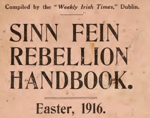 The Rebellion Handbook was published by the Irish Times in 1917, and is based on articles carried in the Irish Times in May 1916. The handbook provides a fascinating insight into the Easter rising. It is one of the key sources and contains a wealth of information, including an official list of casualties, names of prisoners, photographs and a map showing the key locations in Dublin.