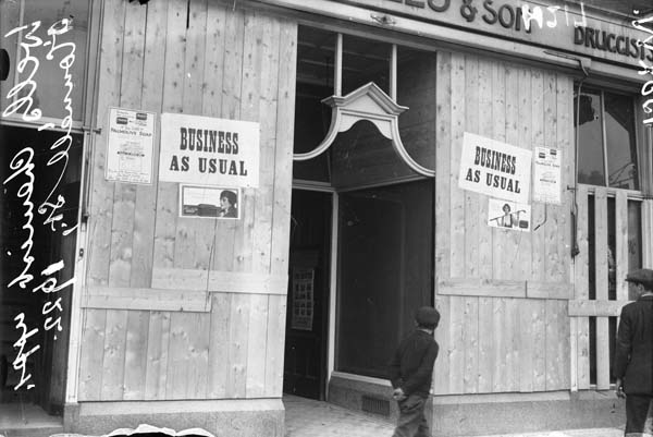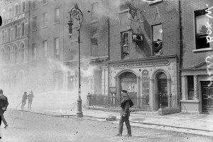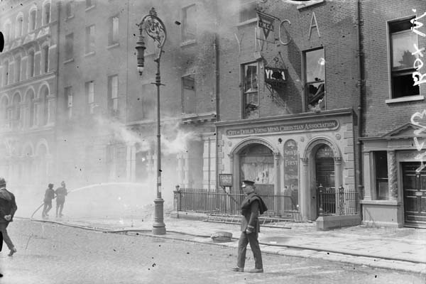 “Man examining remains after the fire at the Custom House, 26 May 1921”