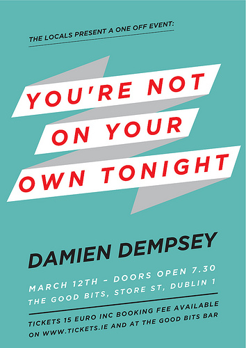 I recently posted notice of a Damien Dempsey gig in The Good Bits to promote his collaboration efforts with the fantastic Maser. I’m very fond of Damiens work, and maintain that They Don’t Teach This Shit In School and Shots are two of my favourite albums. I was excited at the prospect of seeing some of his lyrics standing out around town.