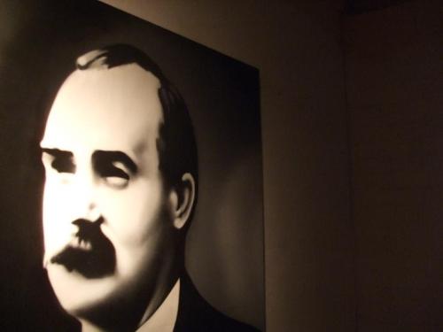 We got a sneak peak on this trek up the stairs however, and a huge image of James Connolly which dominates the first room of a three room exhibition had us dying to see more. We resisted, and went to The Cobblestone. Oisin, a friend who completed the trio, went for a wander around the exhibition like a child who finds all the presents on Christmas Eve. He then came to the pub and told us all about it.