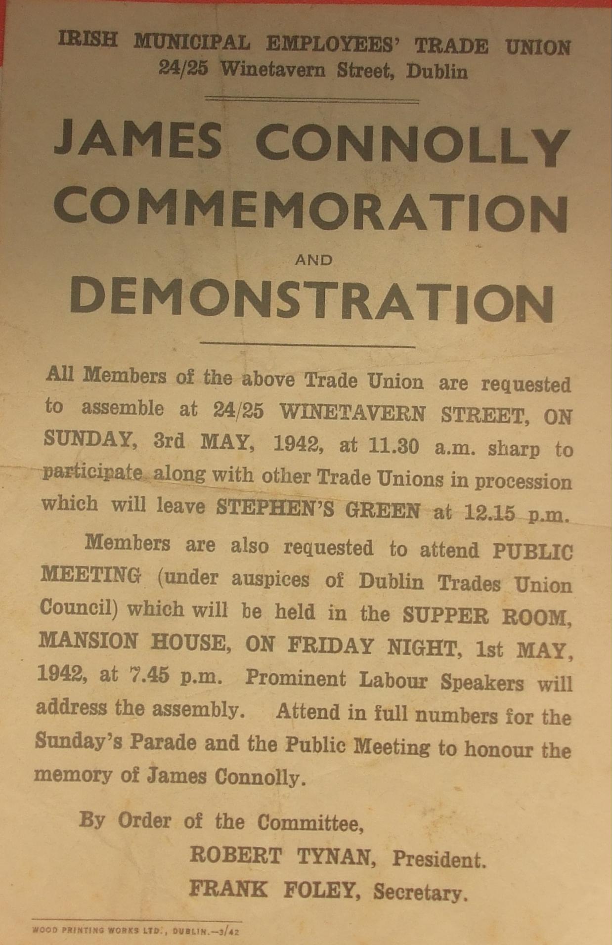 The week is one of personalities. Like Winifred Carney, the suffragette and secretary to James Connolly, who would find her place in Irish history as the ‘Typist with a Webley’. Returning to Northumberland Road, perhaps no man on the republican side was to leave such a deadly mark on the week as Michael Malone, hiding out with a small group of men (and a moveable store dummy too!) in 25 Northumberland Road. Ultimately he and one other man, James Grace, would hold the spot. Who could forget to mention Sean Connolly of the Irish Citizen Army? An Abbey actor of great reknown, who had taken the lead role only a week previously in ‘Under Which Flag?’,a play penned by none other than James Connolly. Siblings of Sean, both male and female, would join him in the insurrection.