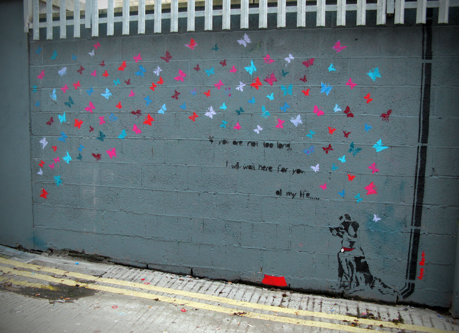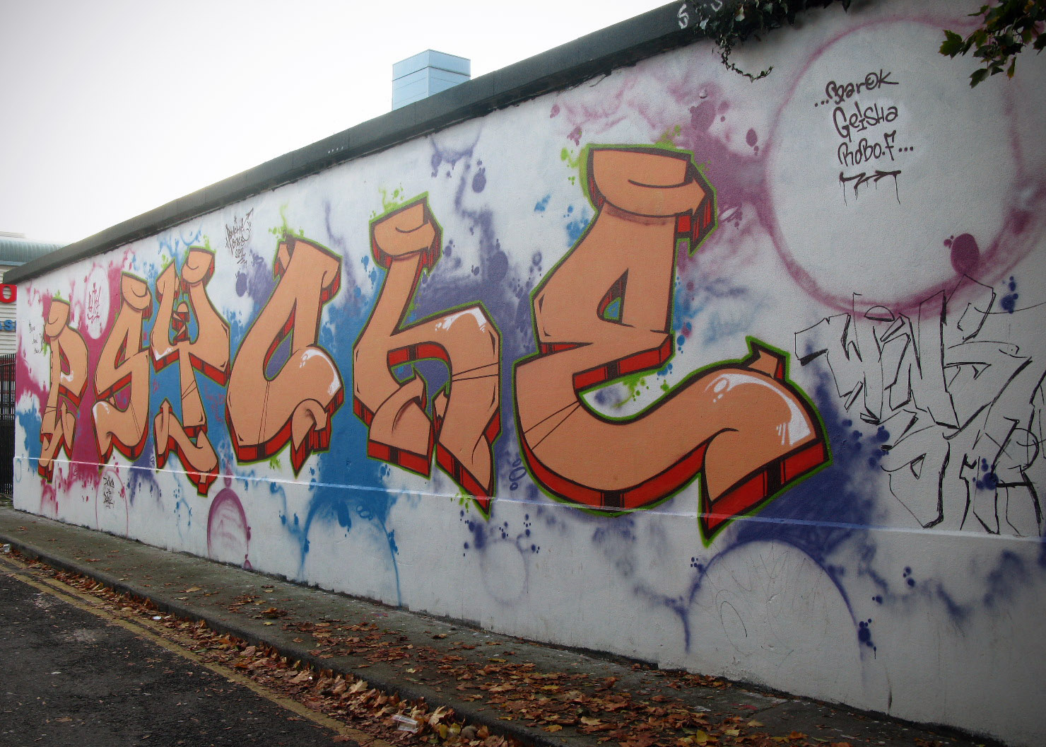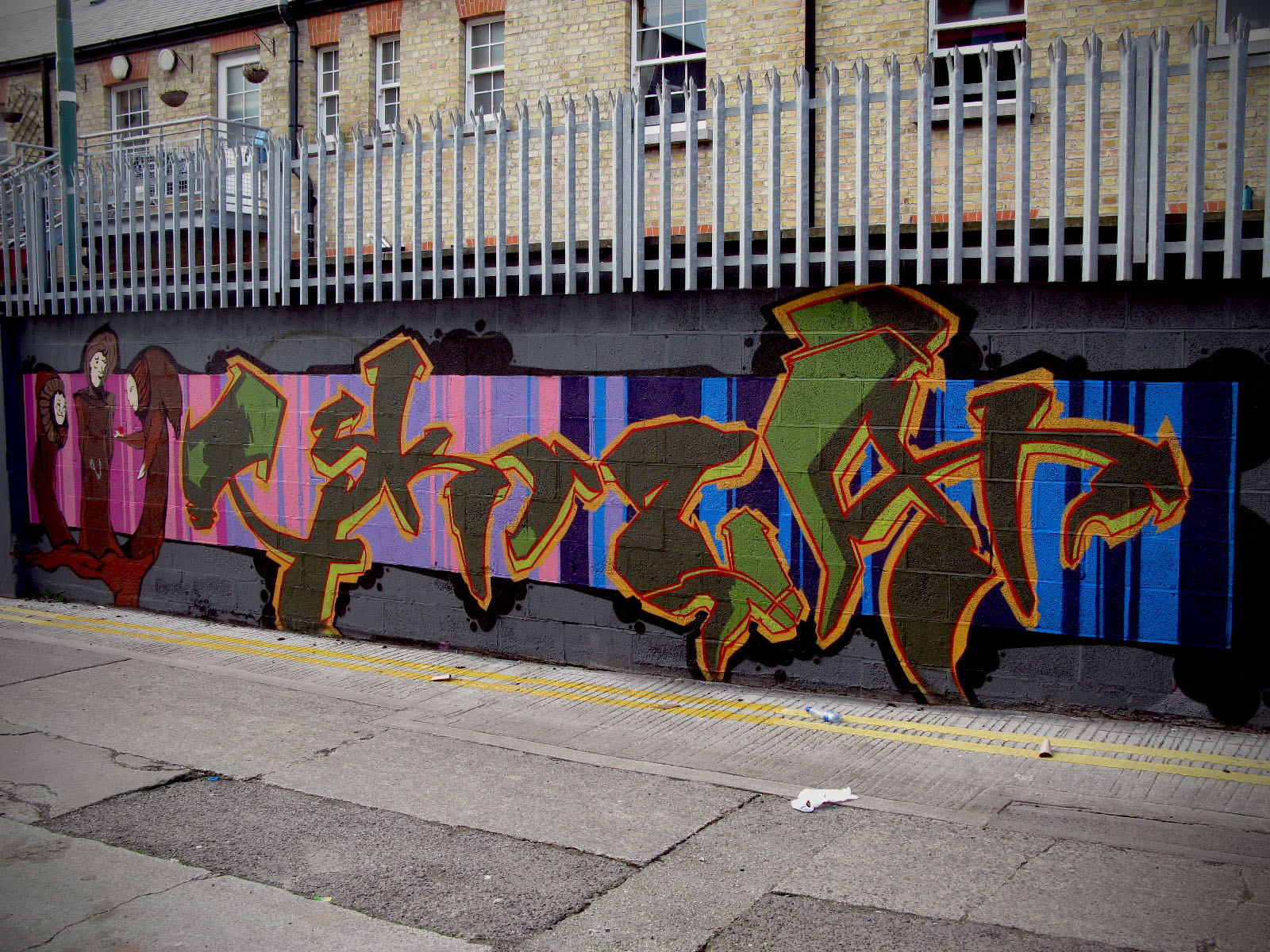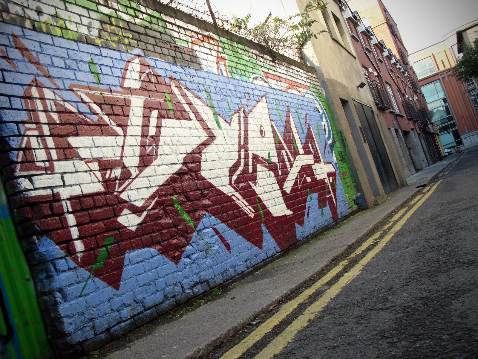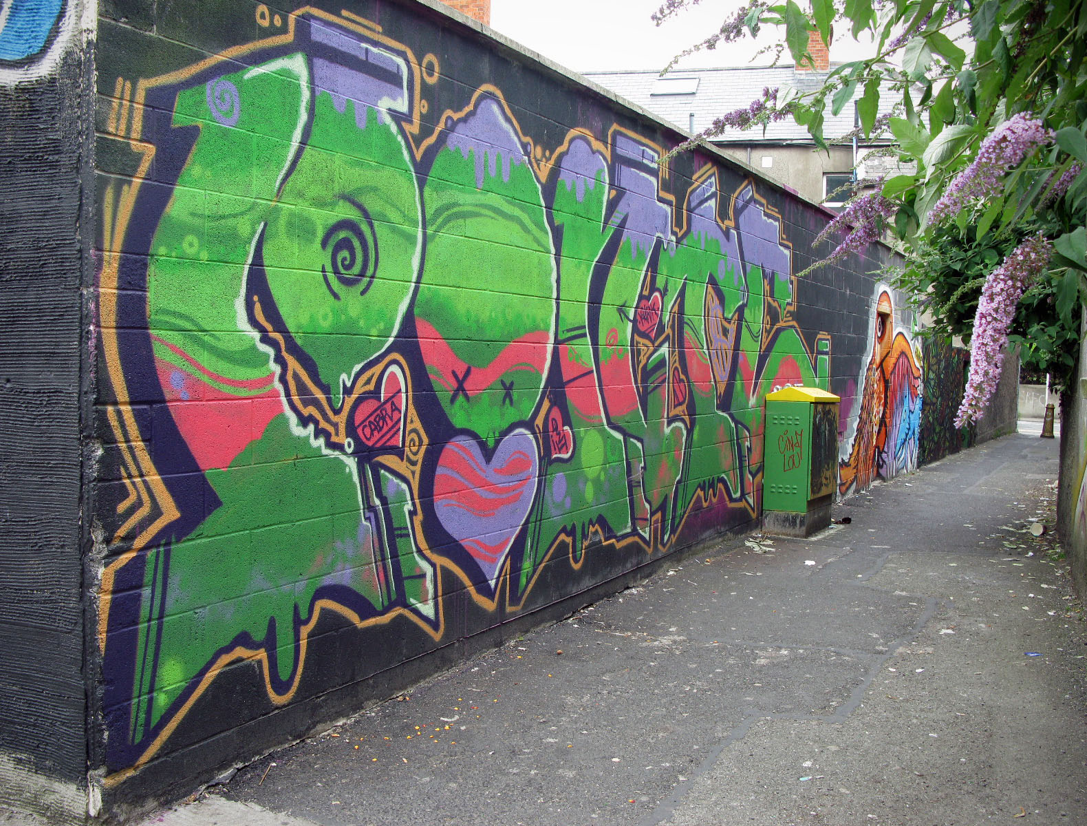 I always re-iterate the fact that there’s nowhere in the world I’d rather be when the sun is shining than Dublin City. So heading down to Ormond Place to check out the grafitti wall there, and seeing the skyline as it is in the image below, I couldn’t help but take the camera out for a shot. skyline Ormond Place (behind Fibber’s Rock Bar) is apparently a designated grafitti spot set up by the Dublin City Council, and there are some fantastic pieces on it. I’ve covered three other such spots, I’ll link to them at the bottom of this set. Dublin is lucky to be home to some absolutely amazing artists, and say what you like about tagging, beautiful street art brightens up a city. 026