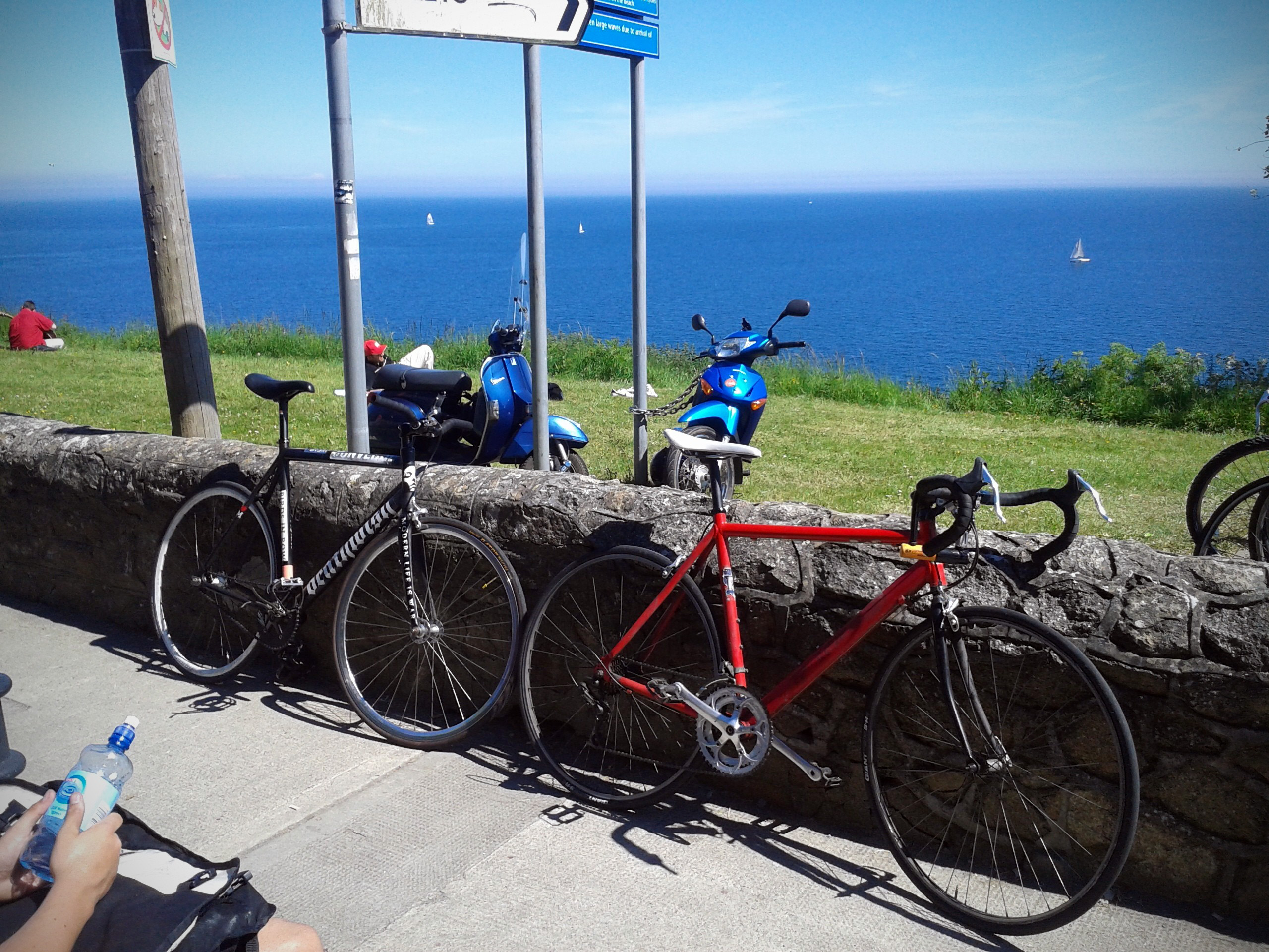 bikes Starting on Sunday, a skip down the coast-road as far as Killiney. It looked like half of Dublin had the same idea as the road to Bray (our intended destination) quickly resembled something like the M50 at rush hour. Getting up and down the hill at Kiliney is hard enough at the best of times, trying to skip between Range Rovers and convertibles made it all the harder. We called it a day at the spot above and headed slowly back.