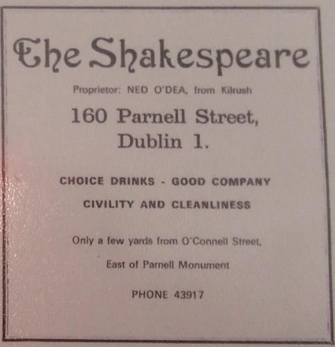 The Irish Times, surprisingly, does not wield many interesting stories relating to the pub. The only one that stood out was that Countess Markievicz presided over a Republican meeting in the premises in September 1923 at which Madeleine Ffrench-Mullen and Helena Maloney spoke.