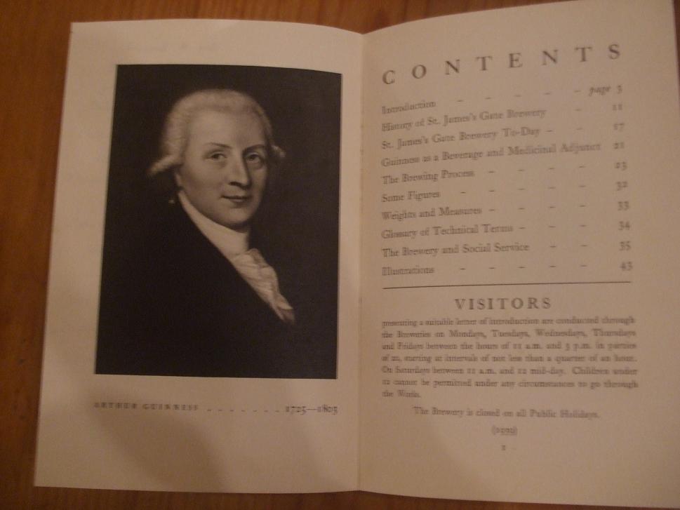 Arthur Guinness himself, and the Contents page.